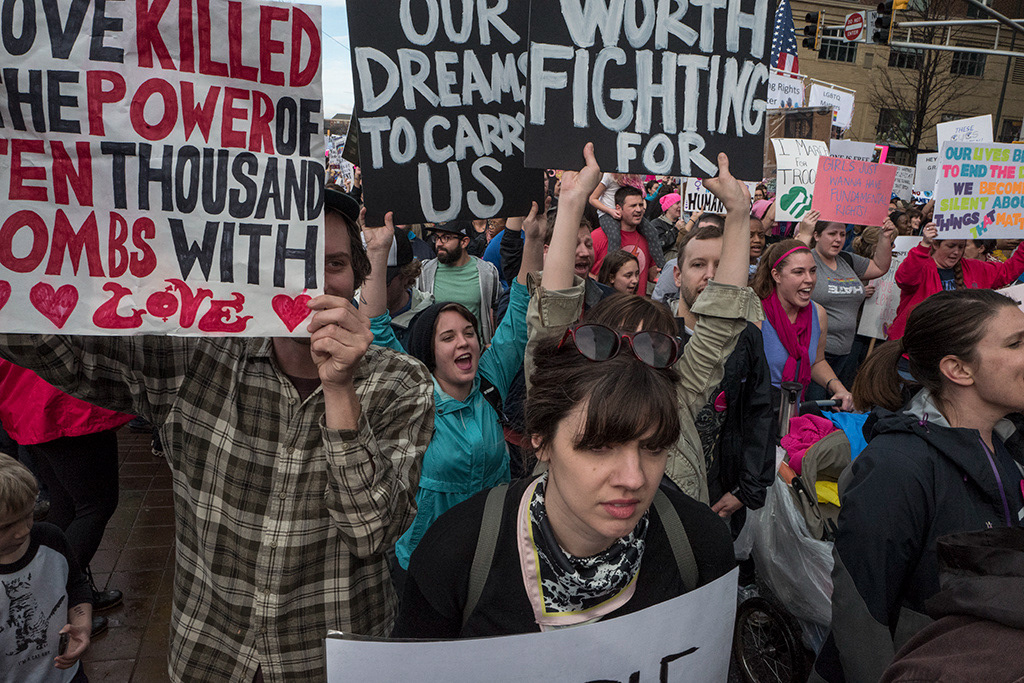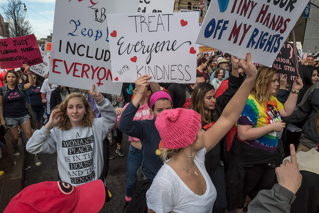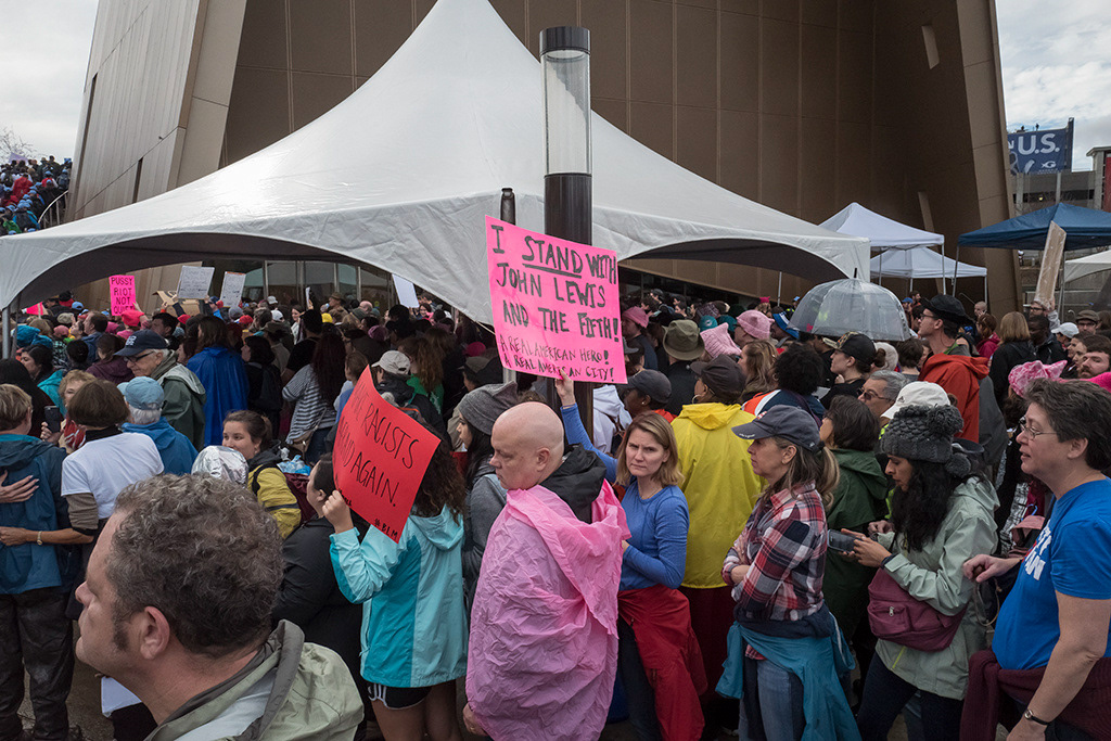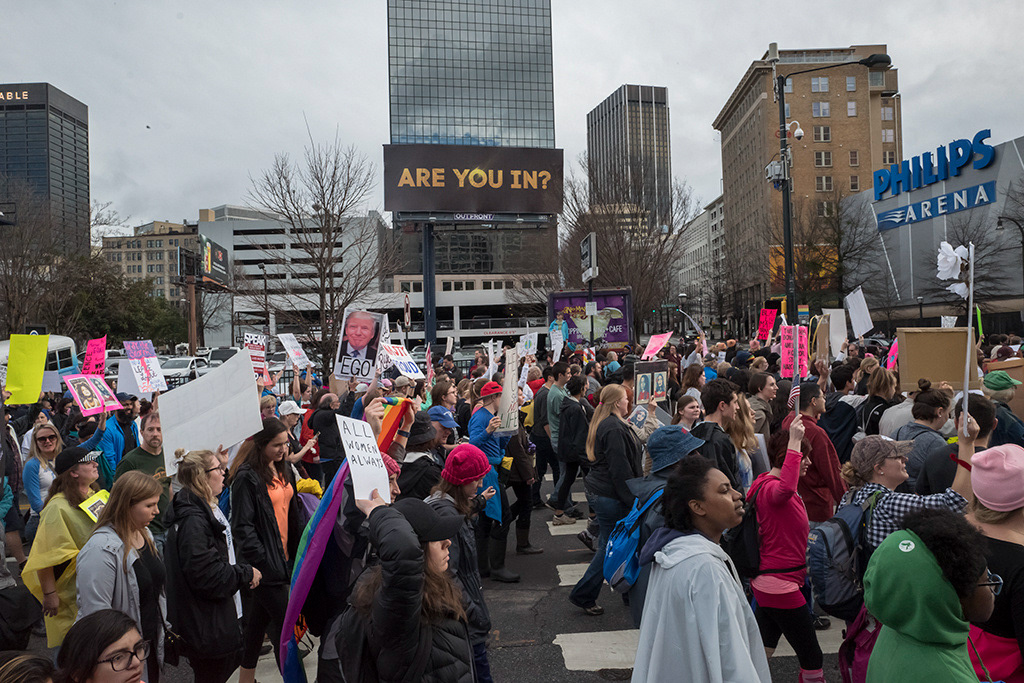 Atlanta's March for Social Justice and Women, January 21, 2017, one of the many coordinated demonstrations involving millions of people across the U.S. and the world to protest the agenda of the new Trump administration.